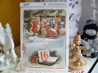 Gestern kam ich doch tatsächlich noch im Tageslicht daheim an. Das habe ich gleich benutzt um Türchen 15 und 16 zu fotografieren. Später kam dann meine Freundin mit ihrem Sohn zum Kaffee vorbei. Bei Plätzchen und Pfefferkuchen haben wir endlich mal wieder gequatscht. Ich weiß echt nicht wie oft wir das immer wieder verschoben haben. Das Kind war derweil mit einer kleinen Spielkonsole beschäftigt, er war so begeistert und weniger erfreut als es dann wieder heim ging, denn die kleine Spielkonsole gehört mir. :o)