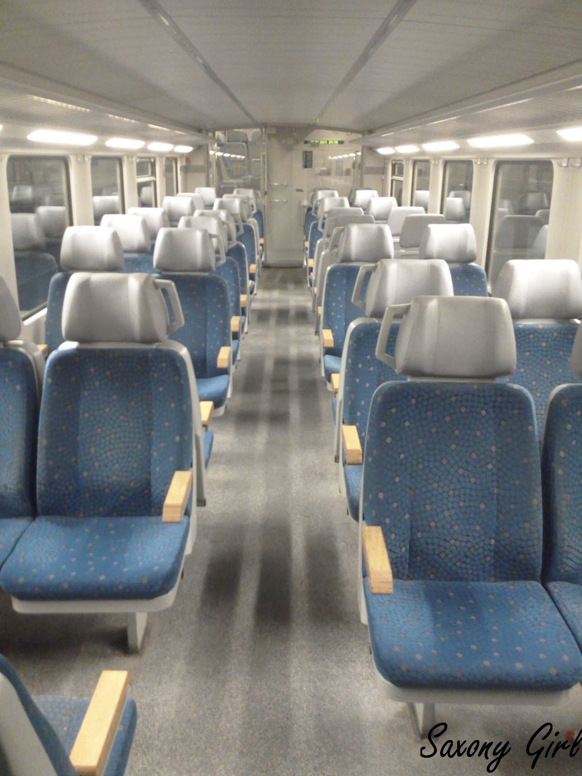 Der erste Zug des Tages. Da fahren so wenig Leute mit, dass hat man schon mal ein Abteil für sich allein.