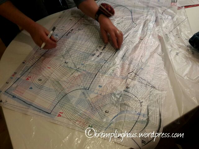 Gut gestärkt sind wir danach in Kerstins Nähreich umgezogen und haben uns den wichtigen Sachen des Abends gewidmet. Es wurden Schnittmuster abgepaust, Schnitte zugeschnitten und genäht, fachgesimpelt über Plotten inklusive zeigen von Tipps & Tricks am Laptop. Fertige Nähwerke bestaunt und sich darüber ausgetauscht. Es war ein schöner Abend, ich habe nebenbei wieder viel gelernt und sogar ein Shirt für mich fertig genäht. Allerdings braucht das dringend noch eine Applikation vorm drauf oder was Gemaltes. Einen Plotter habe ich ja leider nicht. Ansonsten hat das Shirt so einen Hauch von Schlafoberteil und in Kombi mit meiner Schlafhose, die ganz zufällig farblich dazu passte, sah das sogar gut aus. Eieiei.