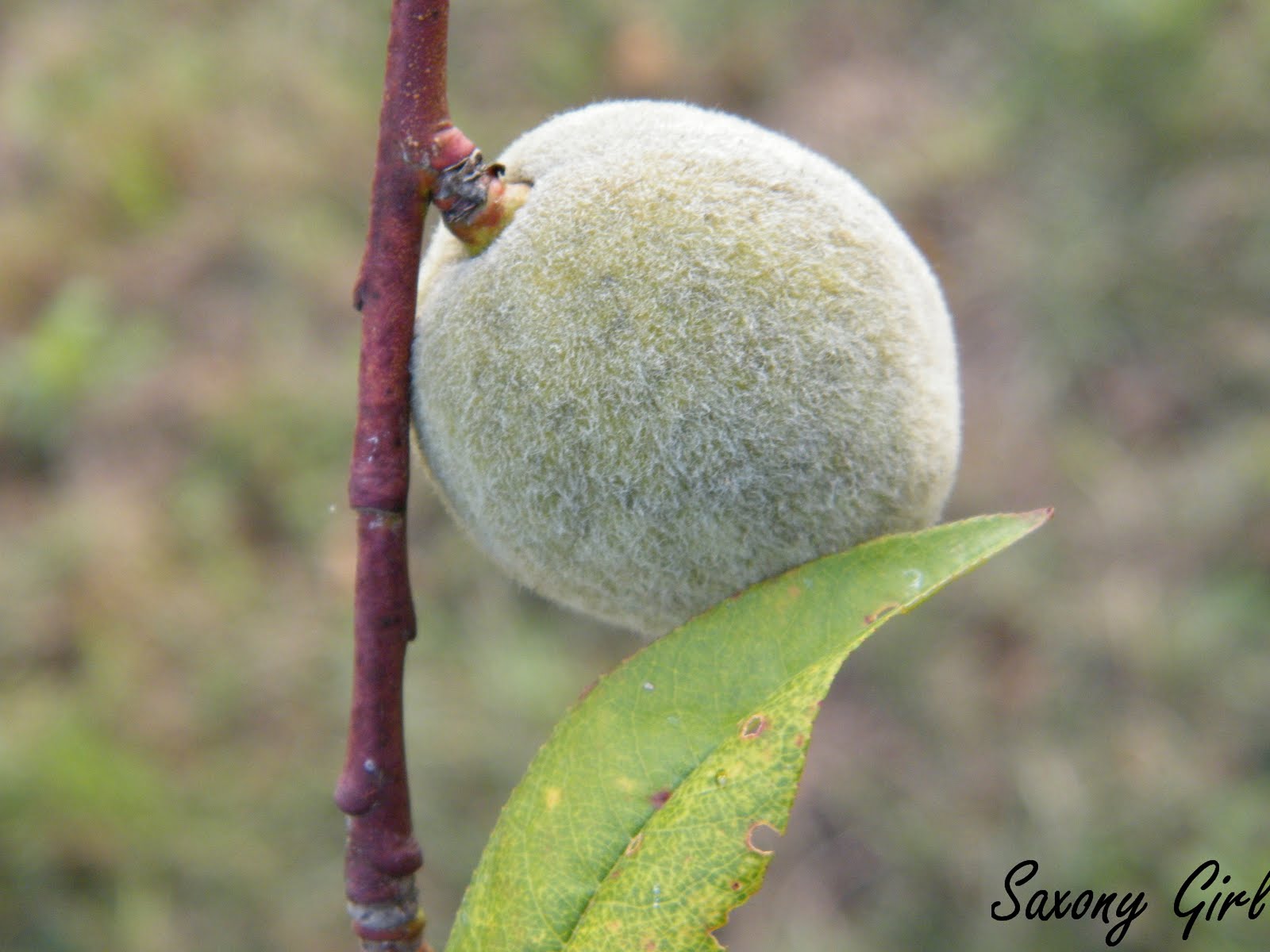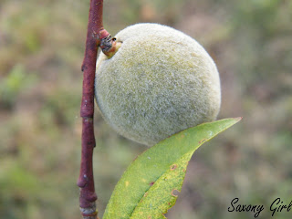 Unser letzter Pfirsichbaum trägt leider nur wenige Früchte, die auch langsam heranreifen.