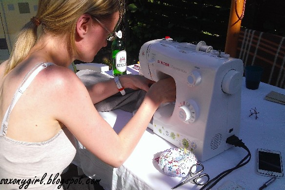 Da ich momentan zuhause aber irgendwie nicht die Zeit finde an die Nähmaschine zu gehen, habe ich aus der Not einfach eine Tugend gemacht, mir die kleine Nähmaschine geschnappt und sie einfach mit in den Garten genommen.