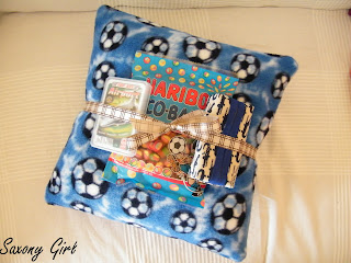 Diesen Montag hatte dann der Sohn von meiner Freundin Geburtstag, er wurde 8 Jahre alt. Und da ich jedes Jahr zum Kaffee eingeladen werde, gab es auch für ihn diesmal wieder ein feines Geschenk. Es bestand aus einem Kissen mit selbstgenähten Fleecebezug im Fußball-Design und eine Taschentuchtasche aus Kokka-Kroko-Stoff in blau, dazu noch ein Kartenspiel und Gummitierchen. Er hat sich sehr gefreut, die Karten wurden gleich angeschaut. :o)