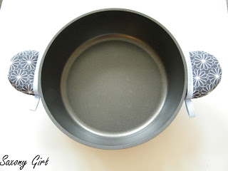 Vor nicht all zu langer Zeit habe ich mir einen schönen „Schmorgeltopf“ gekauft. So einen tollen aus Aluguß, der wie eine gute Pfanne beschichtet ist. Nur sind bei dem leider die Griffe auch aus Guß und da verbrennt man sich ja mal schnell die Fingerchen wenn man nicht daran denkt. Also habe ich mir kleine Handschuhchen für die Griffe genäht.