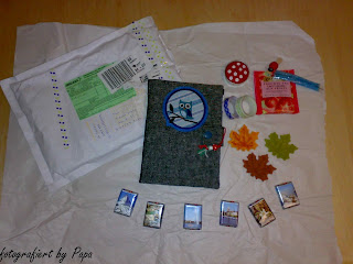 Ich war übrigens vor ein paar Wochen eine von 3 Gewinnerinnen bei Frau Augenscheinlichkeiten und ihrer Verlosung. Da das Präsent bis letzte Woche noch nicht den Weg in meinen Briefkasten fand, habe ich meinen Papa damit beauftragt jeden Tag im Briefkasten nachzusehen. Gestern war es endlich soweit, ich bekam den ersehnten Anruf. „Du hast einen dicken Brief bekommen. Ich frage mich wie die Post den in den Briefkasten bekommen hat“, so mein Papa. Der Brief kam übrigens aus der Schweiz, vermutlich hat der Zoll ihn erst einmal von oben nach unten durchgeleuchtet. Kein Wunder das er da so lange unterwegs war. :o)