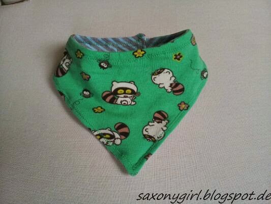 Ein Halstuch für den Zwerg musste her, da das Einzige was wir bisher haben, mal wieder dringend eine Wäsche brauchte. So habe ich fix von dem bestehenden Tuch eine Schablone gefertigt und dann während eines Schläfchens vom Zwerg Stoff ausgesucht und genäht. Ausgewählt wurden dabei ein Streifenjersey aus der Restekiste und ein grüner Jersey mit Waschbärmotiv.