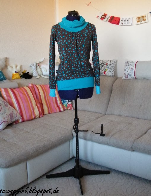 Ich habe der Prymadonna mal meine Shelly übergezogen, um zu sehen wie sie an ihr wirkt. Man muss nämlich dazu sagen, dass ich Kleidungsgrößenmäßig ja eher eine 34 anstatt einer 36 bin. Aber mein Ziel ist ja noch ein paar Kilos auf die Rippen zu bekommen.