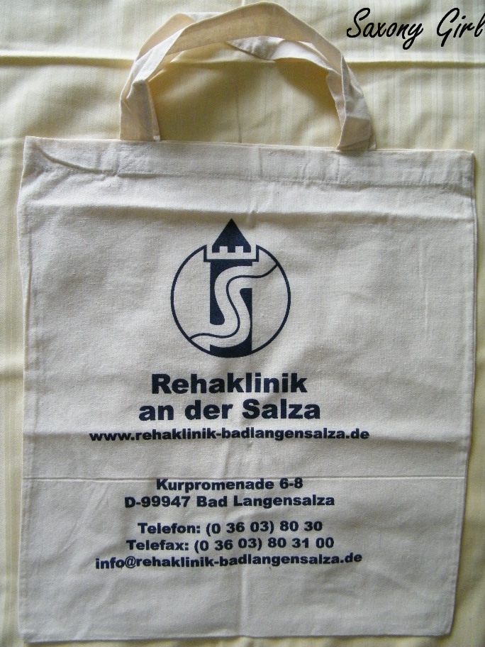 Und damit man seine Terminpläne im Patientenbuch nicht einfach so mit sich rumtragen muss, bekommt man gleich bei der Anmelung hier so einen feinen Baumwollbeutel.