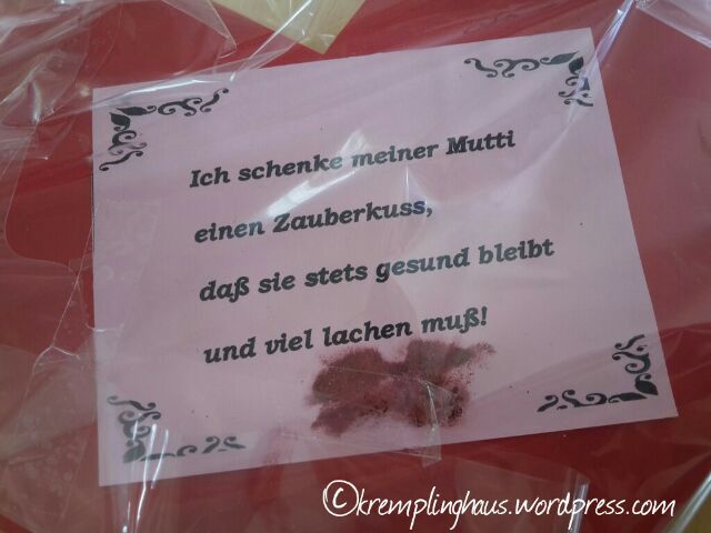 Die Kleine bastelte mit ihren Erzieherinnen ein großes rotes Herz mit einem ganz tollen Spruch auf der Rückseite. In der Gruppe vom Großen wurde gegärtnert und ich bekam eine kleine Zimmerpflanze geschenkt. Einfach wunderbar.