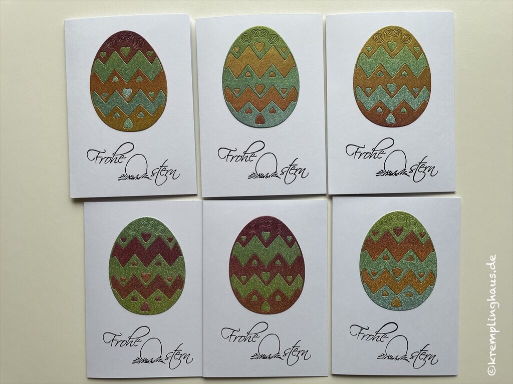 Das Osterkarten herstellen, hat wieder sehr viel Spaß gemacht und wie immer sind ein paar mehr Karten entstanden, als gebraucht wurden. So habe ich jetzt wieder ein kleines Back-up für kommende Jahre, wenn ich mal eine mehr brauche. 😉