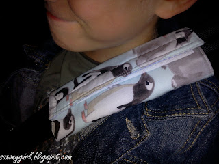 Inspiriert durch clau*chichi, habe ich gestern 2 Halsschoner für den Autogurt nach dieser Anleitung genäht.