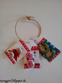 Genauso habe ich übrigens kleine Anhänger gemacht, an die ich Knöpfe zum Verschenken befestigt habe.