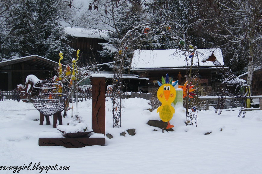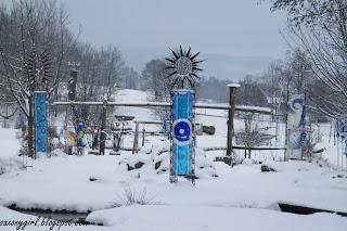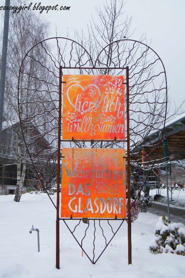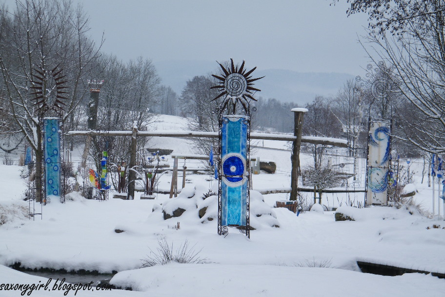 Und gleich darauf kommt man in eine kleine Parkanlage mit den verschiedensten Glas-Metall-Skulpturen. Auch mit Schnee wunderschön, im Sommer bestimmt noch bezaubernder. Dann gibt es zusätzlich noch viele Außenveranstaltungen.