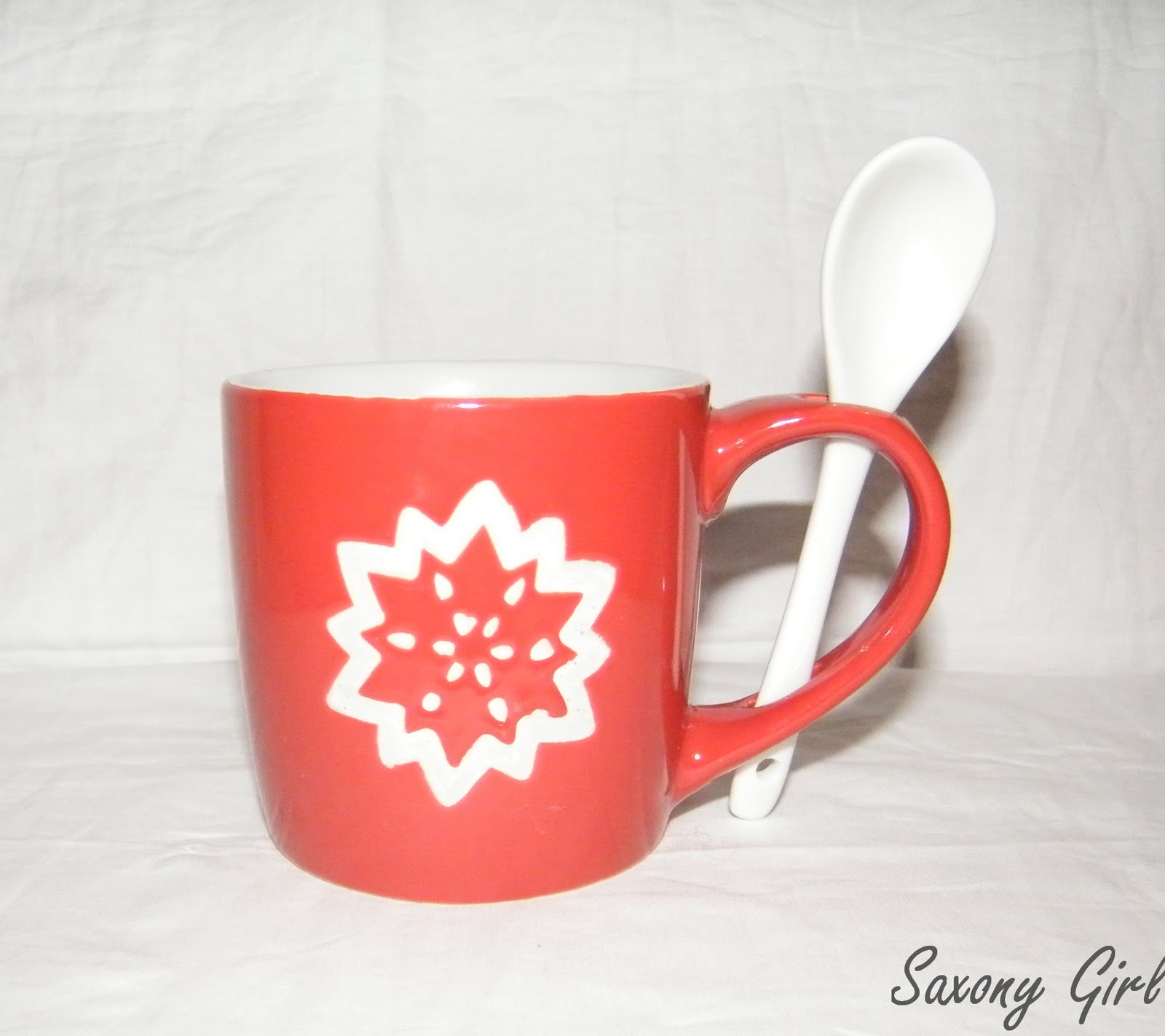 So, die Tasse wird jetzt mit Kakao eingeweiht und dazu gibts gekauften Lebkuchen.